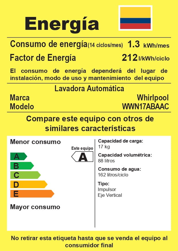 Gracias a su agitador removible, puedes elegir entre un lavado más profundo o uno más delicado según el tipo de prendas. Su capacidad de 17 kg es perfecta para cargas grandes, ideal para familias.