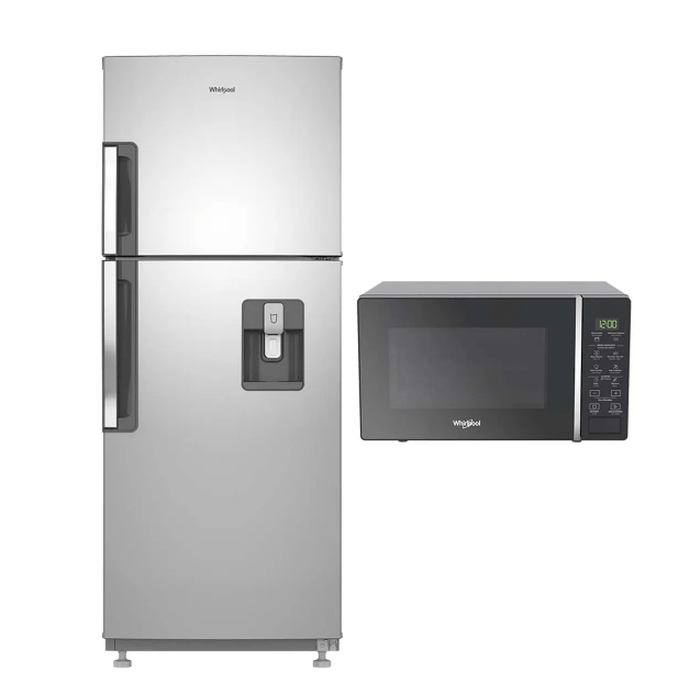 WRW25CKTWW:Nevera WHIRLPOOL No Frost Congelador Superior 264 Litros WRW25CKTWW Gris con dispensador de agua exterior, superficie Anti Fingerprint y sistema de deshielo automático. Cuenta con tecnología 3D de distribución de aire, manteniendo la frescura de los alimentos por más tiempo. Adicional, tiene un cajón para frutas y verduras, compartimiento extra frío, cajón con control de humedad, anaquel con capacidad de latas y capacidad para botellas, tanque de agua de 2 litros y luz Led. WM1807B Negro, cuenta con 5 niveles de potencia y 12 opciones de auto cocción. Con 4 opciones para descongelar y la función Mantener Caliente para que tus platillos estén listos para servirse en cualquier momento. Pantalla y control digital con LED4