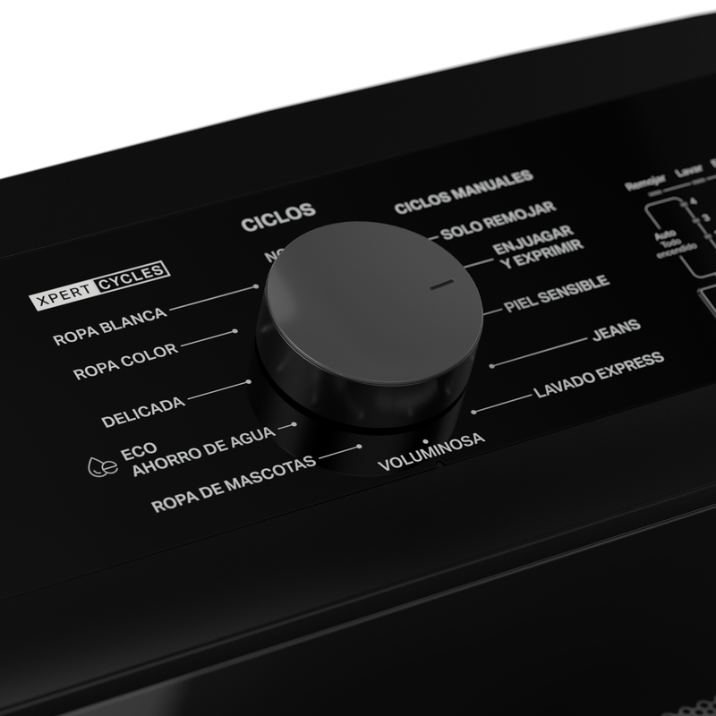 exclusivo sistema de lavado Xpert Eco, que ahorra en promedio 125 litros de agua y 30% de energía por carga, cuidando tu ropa mientras reduce el consumo de recursos.