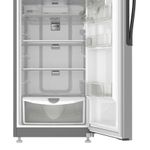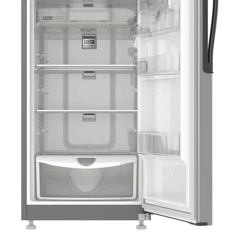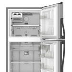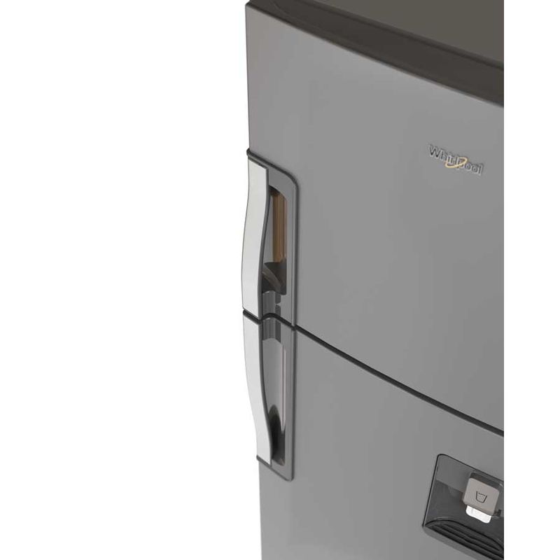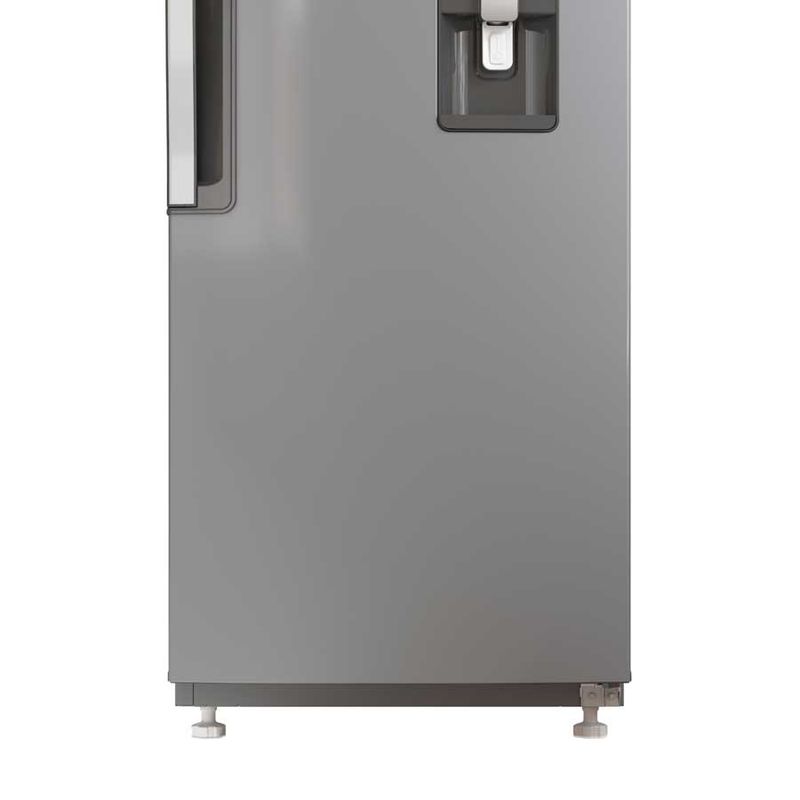 Refrigerador Top Mount de 286Lts con dispensador de agua exterior, superficie Anti Fingerprint y sistema de deshielo automático. Cuenta con tecnología 3D de distribución de aire, manteniendo la frescura de los alimentos por más tiempo. Adicional, tiene un cajón para frutas y verduras, compartimiento extra frío, cajón con control de humedad, anaquel con capacidad de latas y capacidad para botellas, tanque de agua de 2 litros y luz Led.